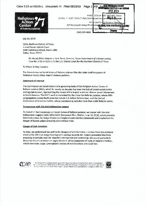 This was made to accompany the filing of the Amicus Brief in support of Randy's case, prepared and signed by over 100 Jewish attorneys in Texas (and others).
